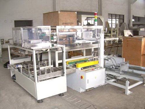 全自動裝箱機能自動將包裝物整形排列,裝入打開的紙箱中,并完成不干膠封口等動作的裝箱設(shè)備,所有動作都是全自動完成的。大多數(shù)自動裝箱機采用新型為組合結(jié)構(gòu),包括成箱裝置、整列裝置、充填裝置和封箱裝置等功能單元,分別完成相應(yīng)的功能動作,各裝置都安裝在同一主機架上。成箱裝置的箱坯架在上方,充填裝置在成箱裝置正下方,整列裝置在充填裝置的前方,封箱裝置在充填裝置的后方。采用P.L.C +觸摸顯示屏控制。設(shè)有缺瓶報警停機,無瓶不裝箱安全裝置。大大方便操作、管理、減少生產(chǎn)人員和勞動強度,是自動化規(guī)模生產(chǎn)必不可少的設(shè)備。